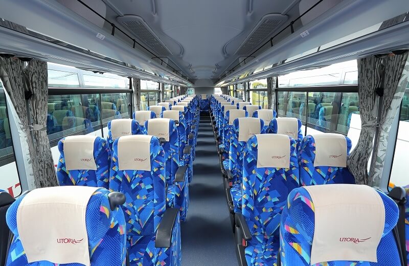 路線バスタイプの車両もご用意可能です。イベントでの輸送はもちろん通学、通勤用のバスとしての契約も承っております。お気軽にご相談ください。